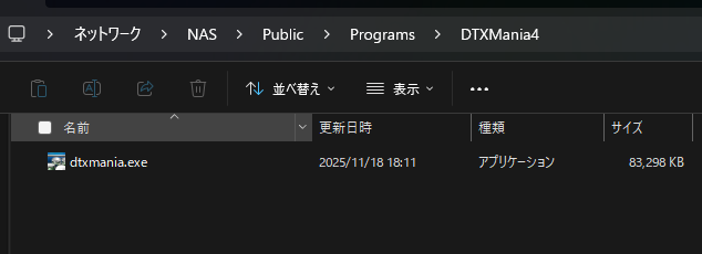自分の場合は、DTXMania を複数の PC から利用するため NAS の共有フォルダ上に配置しています。
