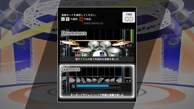 ESCキーを押下してタイトル画面に戻り、Enterキーを押下して演奏モード選択画面に進みます。