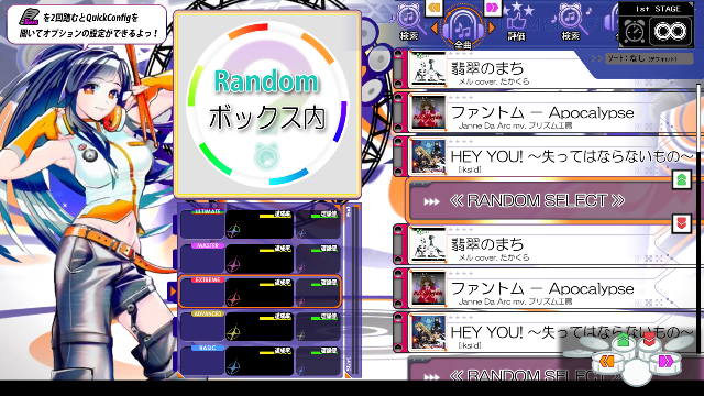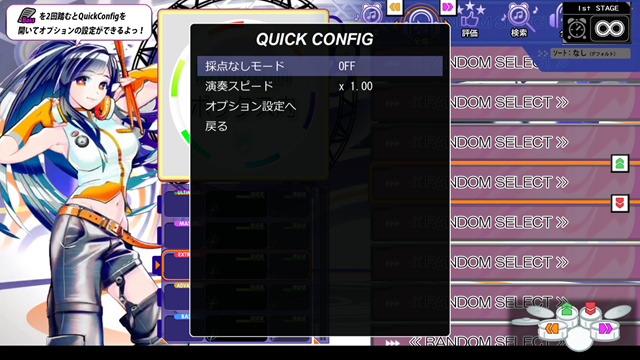 ここで色々な設定を行なうことができますが、今回は何もせずESCキーを押下して、選曲画面に戻ります。