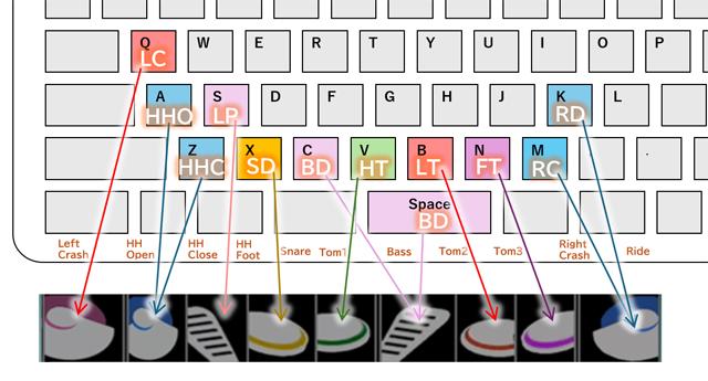 すると、読み込み画面ののち演奏画面が表示され、演奏が始まります。キーボードを使って演奏してみてください。